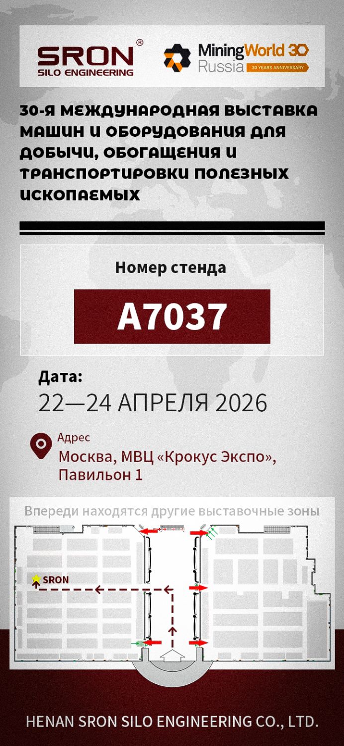 SRON приветствует Вас на Международной выставке горной техники России 2026 года и приглашает посетить наш стенд № A7037! На стенде вы сможете лично ознакомиться со всеми аспектами интеллектуальной системы хранения и транспортировки сыпучих материалов «хранение-транспортировка-управление», пообщаться с техническими экспертами в индивидуальном порядке и обсудить пути зеленого и интеллектуального обновления отрасли горной промышленности.