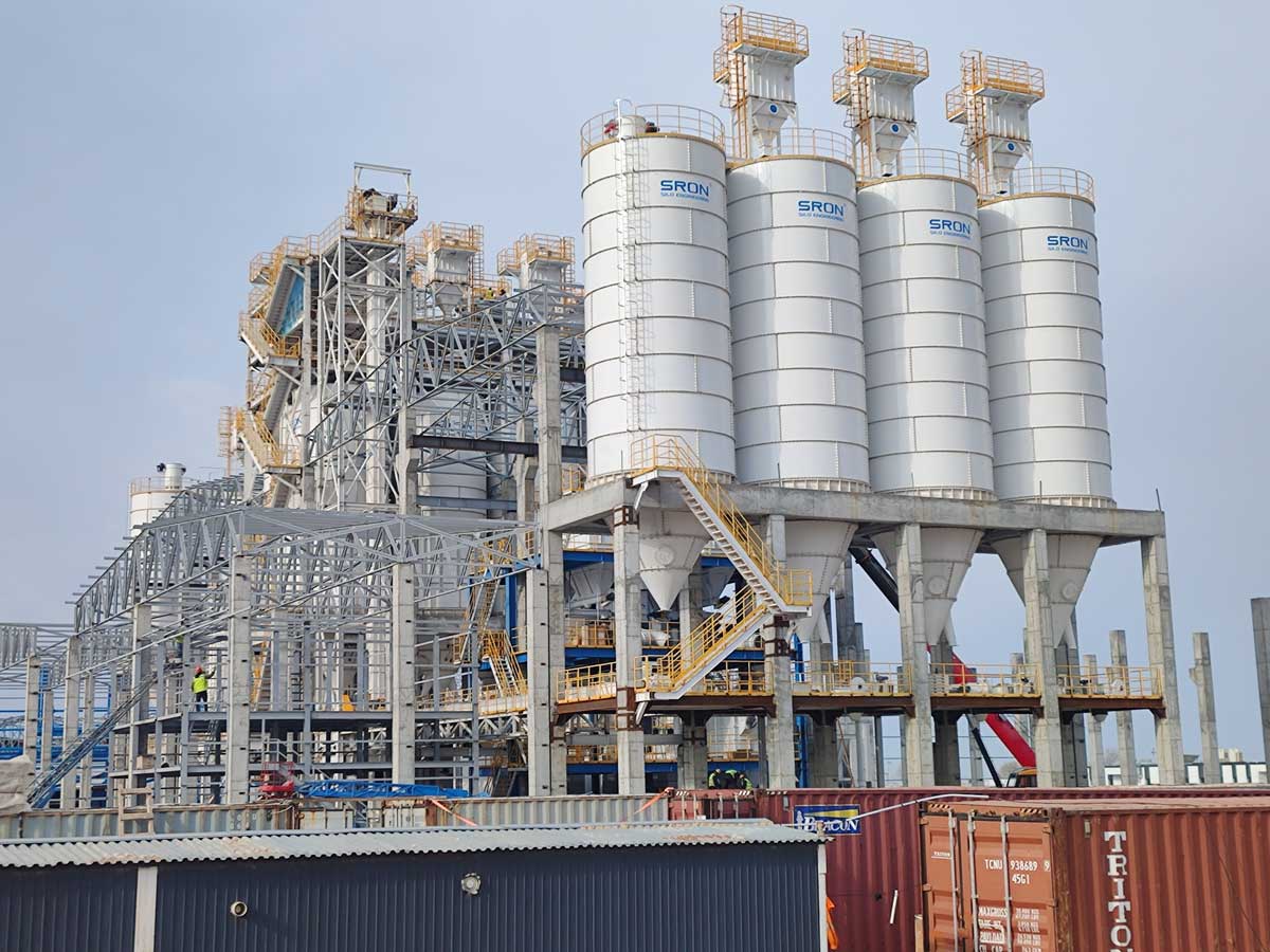 Данный проект представляет собой высокоинтегрированное комплексное решение для хранения и транспортировки сыпучих материалов, охватывающее полный технологический процесс: хранение сырья, транспортировку, просеивание, сверхтонкий помол, хранение готовой продукции, автоматическую упаковку и отгрузку насыпных материалов. В проекте применена комбинированная схема из сборных стальных силосов и сварных стальных силосов, с дифференцированным проектированием в зависимости от различных материалов и условий эксплуатации, что обеспечивает безопасность, долговечность и эффективность строительства. Вся система отличается сложной технологией и высокими техническими требованиями, оснащена совершенной интеллектуальной системой мониторинга и управления. Благодаря зрелым системным проектным и инженерным возможностям компании "SRON" была достигнута высокая координация и стабильная работа всех технологических этапов, создав высококачественный инженерный проект, сочетающий интеллектуальность и экологичность.